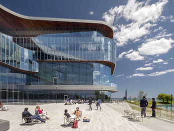 Since it was founded in 1908, the Kellogg School of Management has been a pioneer in business education. Located on the shore of Lake Michigan, north of Chicago, the new Global Hub creates a bookend to one of the world’s great centres of architecture and urbanism. With views on all sides, the design is connected to the Lake, Chicago Skyline, and Campus. The main entrance on the west creates direct lines of access from the campus side. The siting responds to the arc of an existing path and the edge of the east playing field.