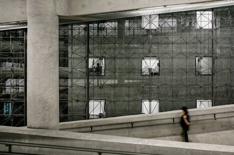 Besides transforming the building structure where the department store Mesbla used to work, this social center for leisure and culture also agglutinated a neighbor small building that was demolished to give way to the construction of a technical block reserved for services and equipment. In central void of the main building, which used to serve as an illumination gap crowned by a skylight at the old store section, a new independent structure consisted of four cylindrical pillars support new slabs. To expand the area of the original slabs by nearly 500 square meters, the proposal made the floors continuous. In these new spaces were concentrated uses that need greater voids, such as the theatre inserted in part of parking area (with an independent access) and the double-height exhibition hall. On the top, the new structure supports a new volume, three floor high, congregating cafe, locker rooms and a pool on the roof. The ground floor, named SESC Square, is an extension of the street and most of the spaces in the social facility are open to everyone. The vertical circulation gains potential by a series of ramps that connects continuously the complex program and invites visitors to explore the building.
