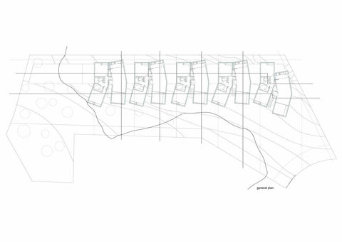A modular system that allows an accommodation of the various functions, clearly dividing each house in two (public-private), collaborating with the idea of town-village-urban profile. Altering the natural soil as little as possible and join to the landscape through the views.